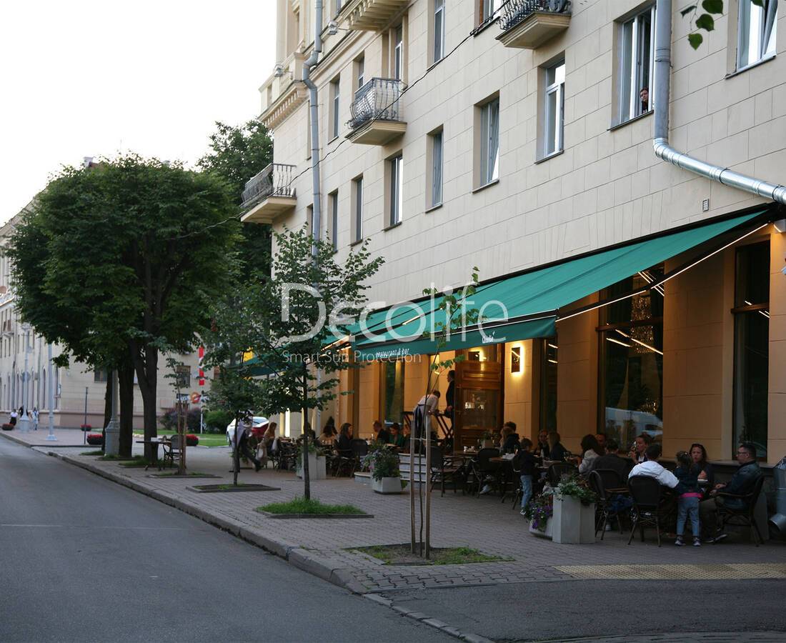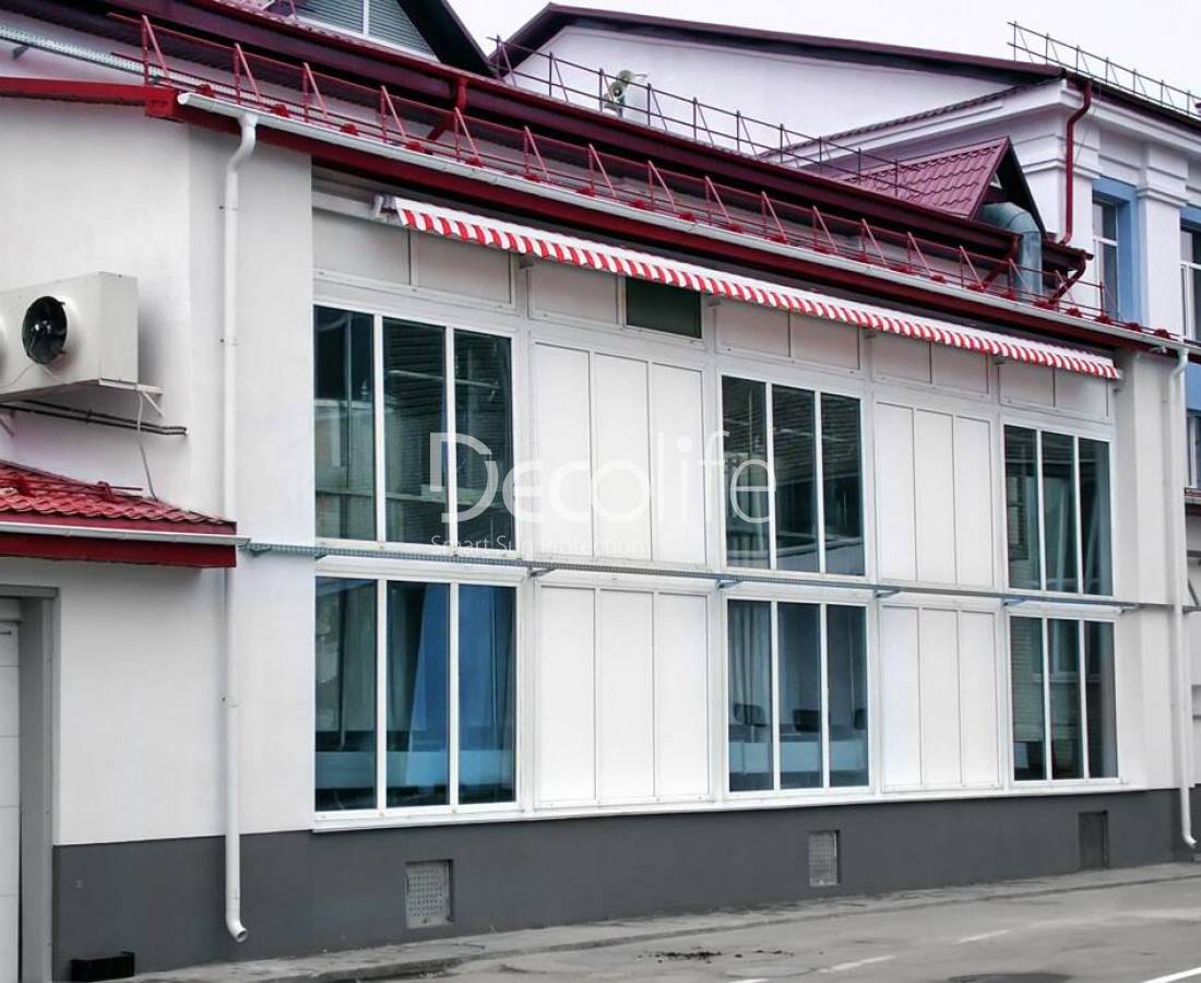 Витринные маркизы Decolife (G400, G450) представляют собой изящное и функциональное решение для защиты витрин магазинов, торговых площадей, а также оконных проемов городских жилых и офисных зданий от интенсивного солнечного излучения.